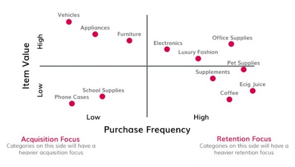 通常来说,当你的商品越靠近右侧,你的客户留存策略就越重要。然而,千万不要因为这样就忽略了持续获取新的顾客。