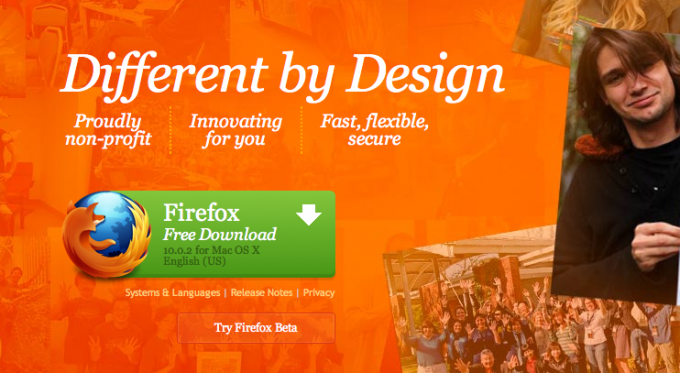 按钮要多大才算够看? Econsultancy 认为愈大愈好,不过最好还是搭配页面设计,才不会坏了整个画面协调度。不过也有例外情况,必要时即使多占些版面也没关系。瞧瞧下图 Firefox 的按钮,是不是不去看到都不行?
